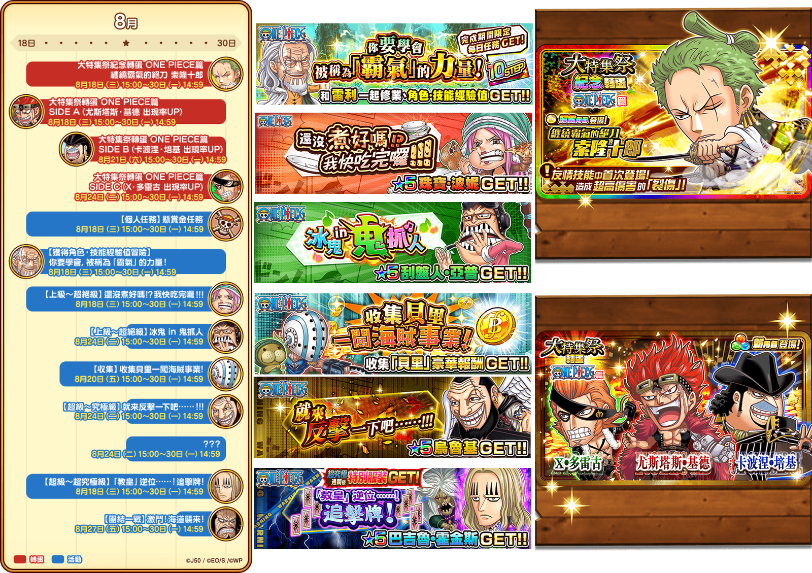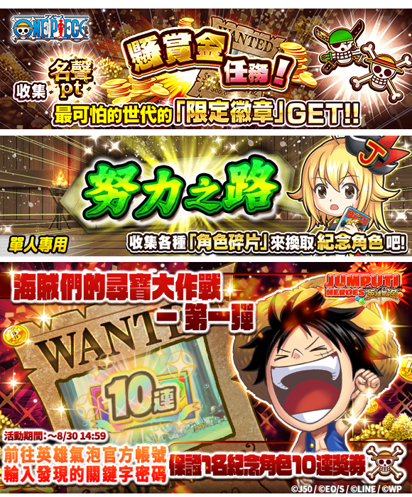 大特集祭・航海王篇第五彈:台灣時間 8月18日(三)15:00 ~ 8月30日(一)14:59