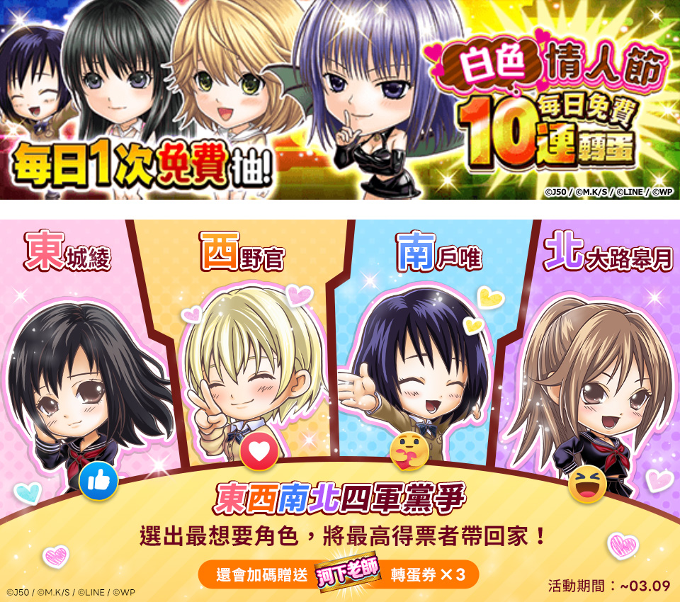 票選第一名角色登入送,還有每日愛的10連免費抽!