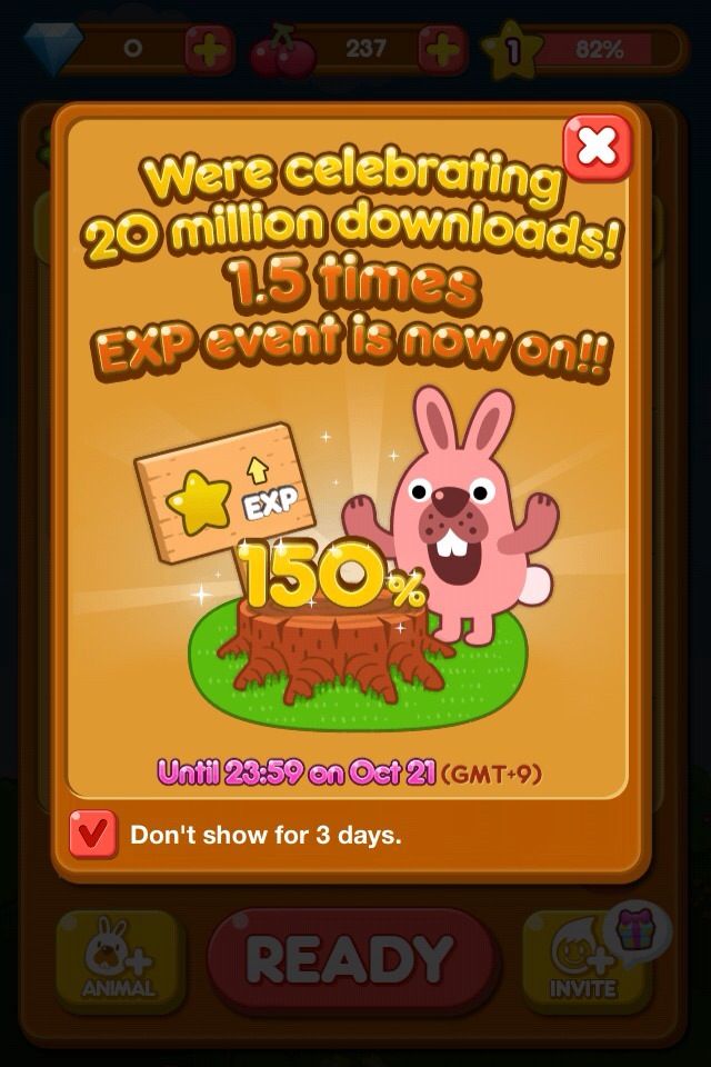 10月21日:獲得1.5倍的經驗值 10月22日:獲得2倍櫻桃 10月23日:只需一個Friend Point (FP)點數即可召喚好友的動物幫手