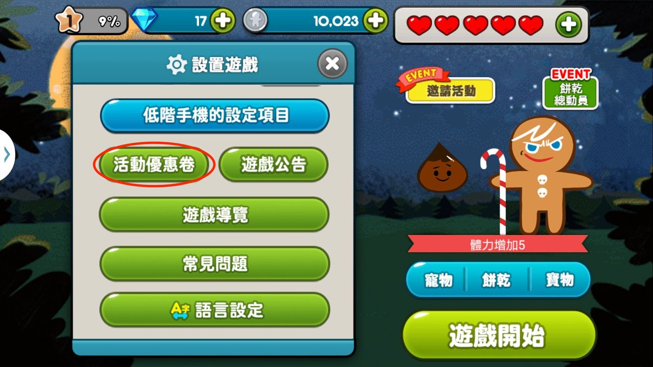 跑跑薑餅人情境區:Cookie Run水晶 5 顆 或 Pokopang高級招喚券(隨機發送)