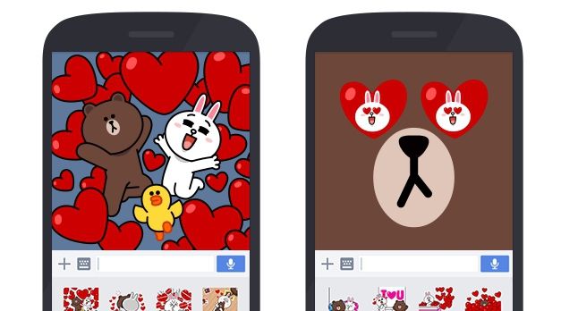 而第一組全螢幕貼圖,則由LINE官方的超人氣角色熊大與兔兔,推出「 熊大&兔兔-整個螢幕都在戀愛篇☆」,幫你用愛心四射的貼圖來表達心意!