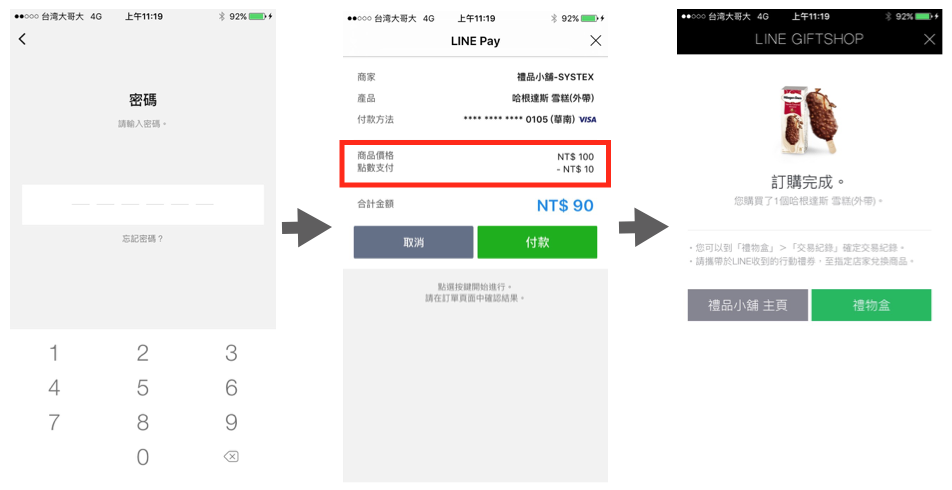 3. 輸入您的LINE Pay密碼 --> 確認付款 -->訂購完成!