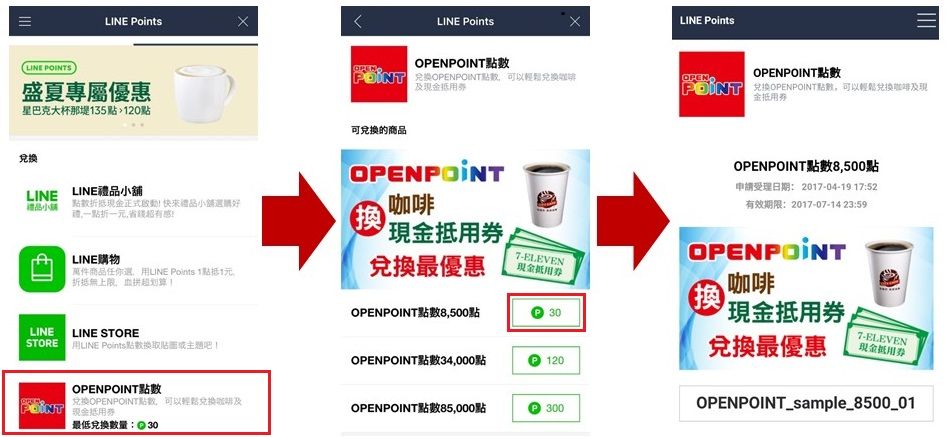 ※本檔以LINE Points 25點兌換為OPENPOINT 8500點活動期限至2017/6/30止。