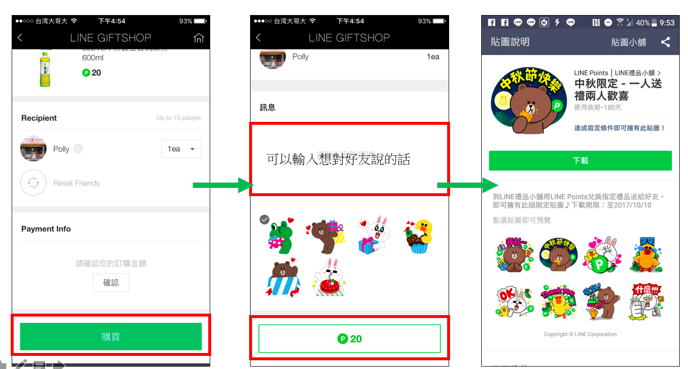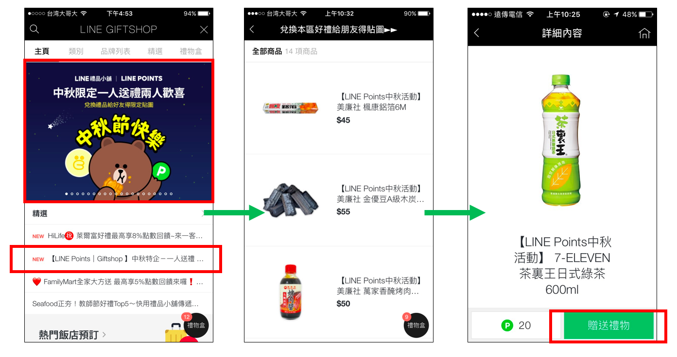 2. 以LINE Points全額兌換指定中秋賀禮贈送給好友