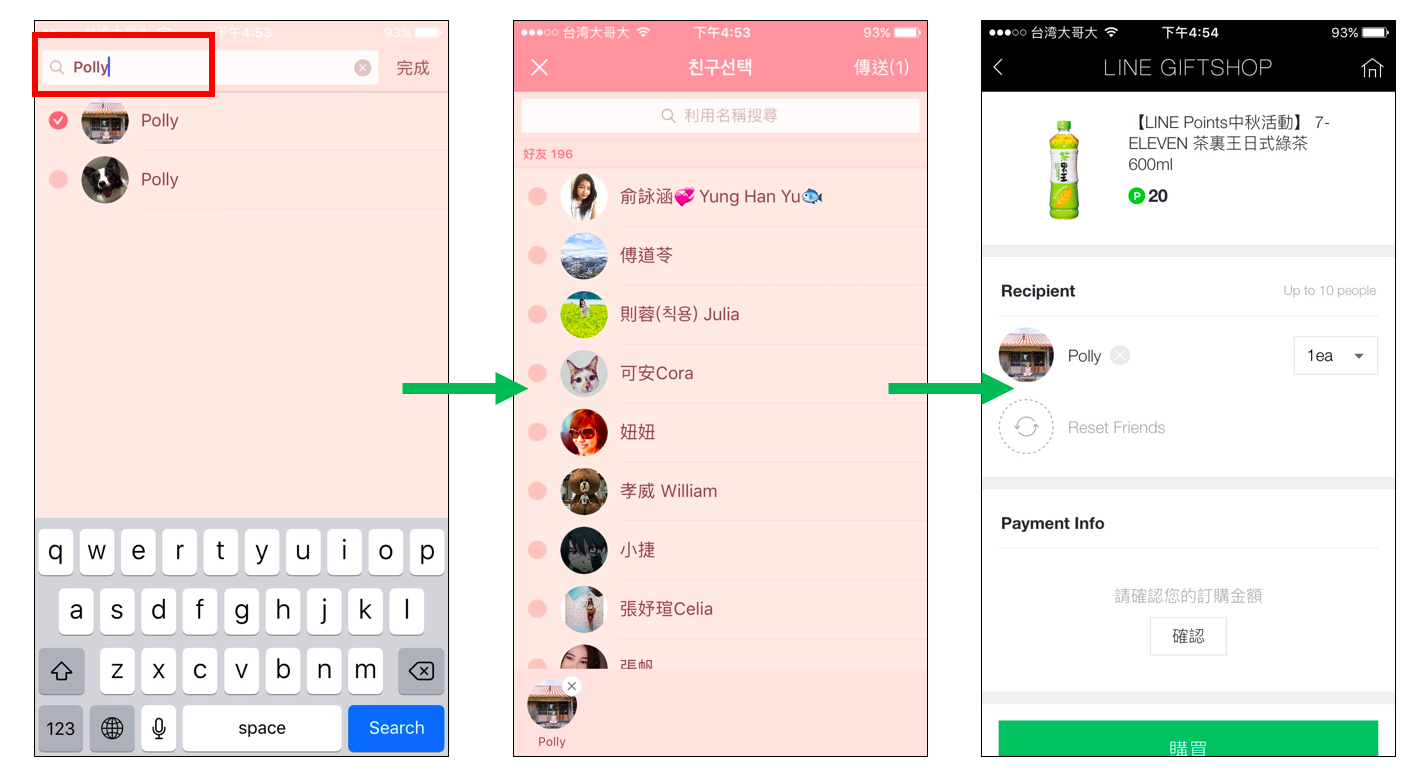 Step2 : 選擇要送給哪個好友,確認後點選「購買」