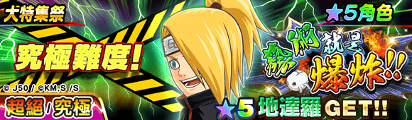 ※ 推薦給老手進行的大特集祭活動關卡,一共有上級,超級,超絕級三種難度。打倒超絕級活動Boss時,活動報酬角色的掉落率為100%!另外,如果將「我愛羅」設為主力角色後去挑戰的話,會觸發特別的劇情喔!