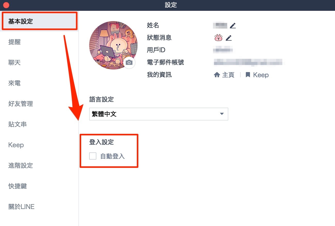 ▼登入LINE電腦版後,把「自動登入」勾選起來,就不用每次打開都得輸入密碼囉!
