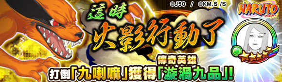 ※ 與等同天災強度的最強尾獸九喇嘛展開激戰吧!只要順利戰勝九喇嘛,就能入手全新傳奇英雄的「漩渦九品」以其專用強化書喔!不過九喇嘛在戰鬥中會封印我方的友情助陣角色,而且究極級以上難度時可是會封印2名角色5回合!再加上他還會不斷提昇自身攻擊力,因此戰鬥起來可是格外辛苦。隊伍中盡可能編阻能對抗封印友情助陣角色的隊員,並且在九喇嘛強度提升太強前盡速將其解決掉!