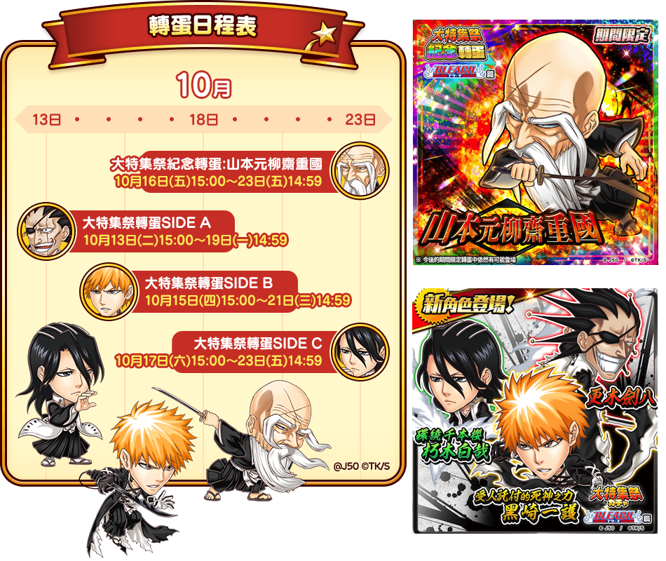 大特集祭・死神篇第二彈新角色與轉蛋時程表