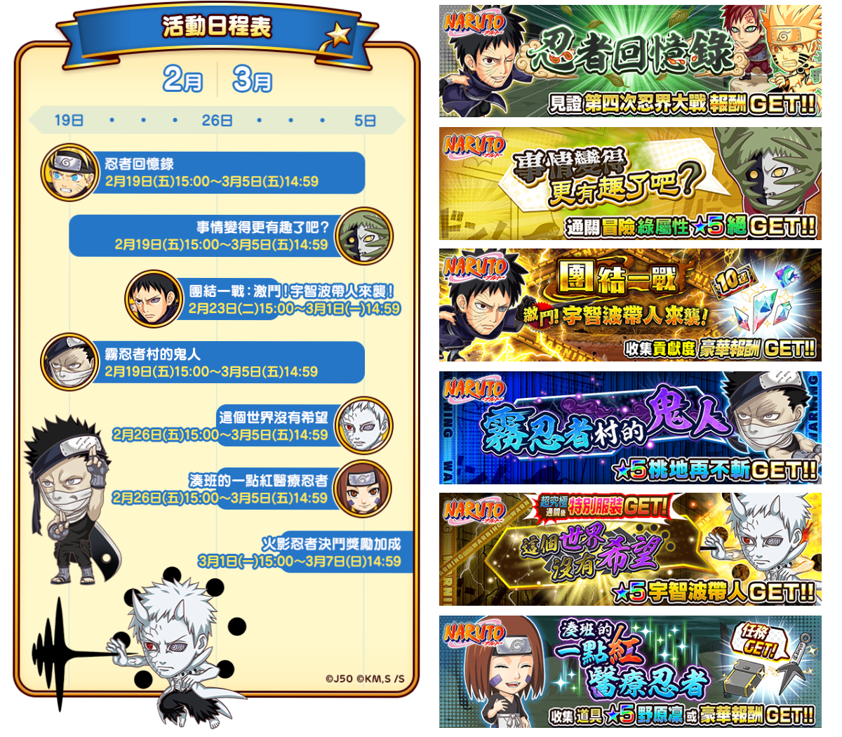 大特集祭・火影忍者篇第三彈:台灣時間 2月19日(五)15:00 ~ 3月5日(五)14:59